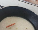اغسل الأرز واغليه في ماء مع الملح، عود القرفة، وحبتي الهيل حتى ينضج نصف نضج ثم صفّه.